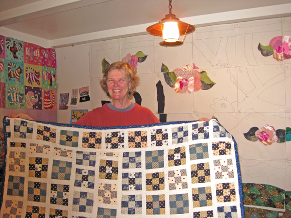 | Gratia was happy to have me quilt her first quilt ever that she made for her grandson. Gratia did part of the quilting on my longarm! |