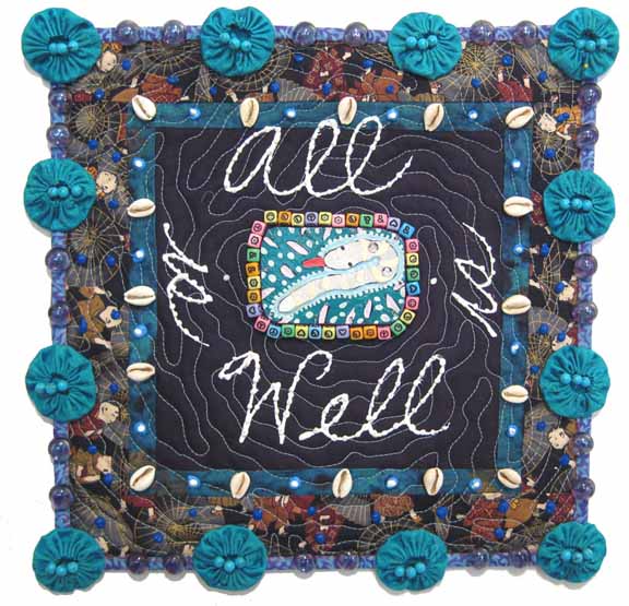 Make a design with the odds and ends that you already have! While collecting together your embellishing materials; consider the idea of using small items like earrings or other jewelry that you no longer wear; small shells from the beach or buttons from old clothes. These objects give the quilt special meaning. |