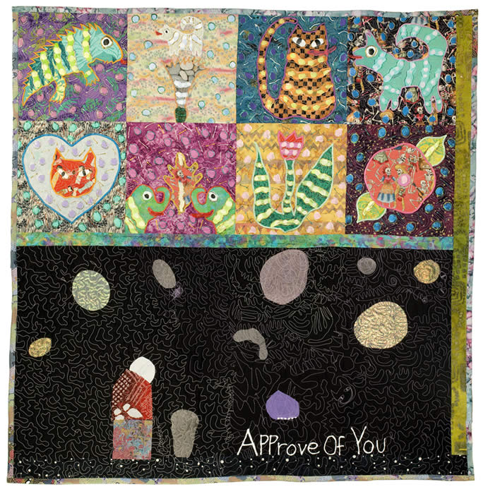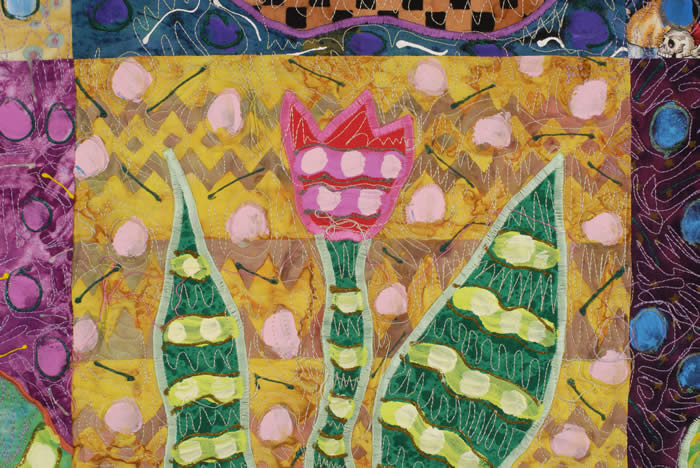 Fabric, acrylic paint, thread, machine appliqué, machine quilted