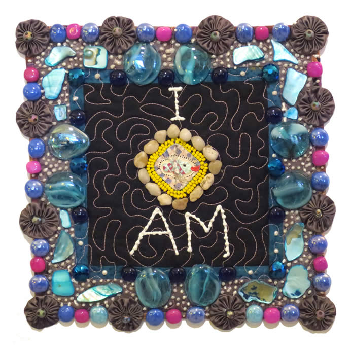 Each quilt in the “Abundance Quilt” series is 12”x12” and is an expression of the abundance that we all share. Each one has a phrase that can be used as a tool or a reminder to become more aware of something to be thankful for and to appreciate about our lives. All of the artworks are machine quilted and embellished with buttons, beads and paint to celebrate the joy and richness that we will find within ourselves if we can only look for it. These quilts are sure to enhance the walls of your home or office and make a difference in how you feel. |