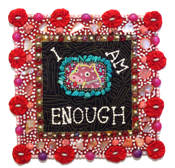 Each quilt in the “Abundance Quilt” series is 12”x12” and is an expression of the abundance that we all share. Each one has a phrase that can be used as a tool or a reminder to become more aware of something to be thankful for and to appreciate about our lives. All of the artworks are machine quilted and embellished with buttons, beads and paint to celebrate the joy and richness that we will find within ourselves if we can only look for it. These quilts are sure to enhance the walls of your home or office and make a difference in how you feel. |