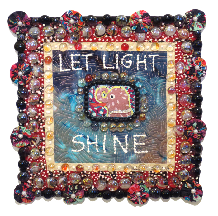 Each quilt in the “Abundance Quilt” series is 12”x12” and is an expression of the abundance that we all share. Each one has a phrase that can be used as a tool or a reminder to become more aware of something to be thankful for and to appreciate about our lives. All of the artworks are machine quilted and embellished with buttons, beads and paint to celebrate the joy and richness that we will find within ourselves if we can only look for it. These quilts are sure to enhance the walls of your home or office and make a difference in how you feel. |