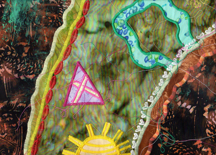 We will be doing Intuitive drawing, Mostly Machine appliqué with painting and embellishing.