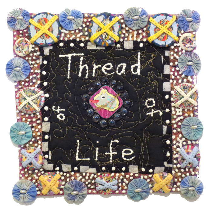 Each quilt in the “Abundance Quilt” series is 12”x12” and is an expression of the abundance that we all share. Each one has a phrase that can be used as a tool or a reminder to become more aware of something to be thankful for and to appreciate about our lives. All of the artworks are machine quilted and embellished with buttons, beads and paint to celebrate the joy and richness that we will find within ourselves if we can only look for it. These quilts are sure to enhance the walls of your home or office and make a difference in how you feel. |